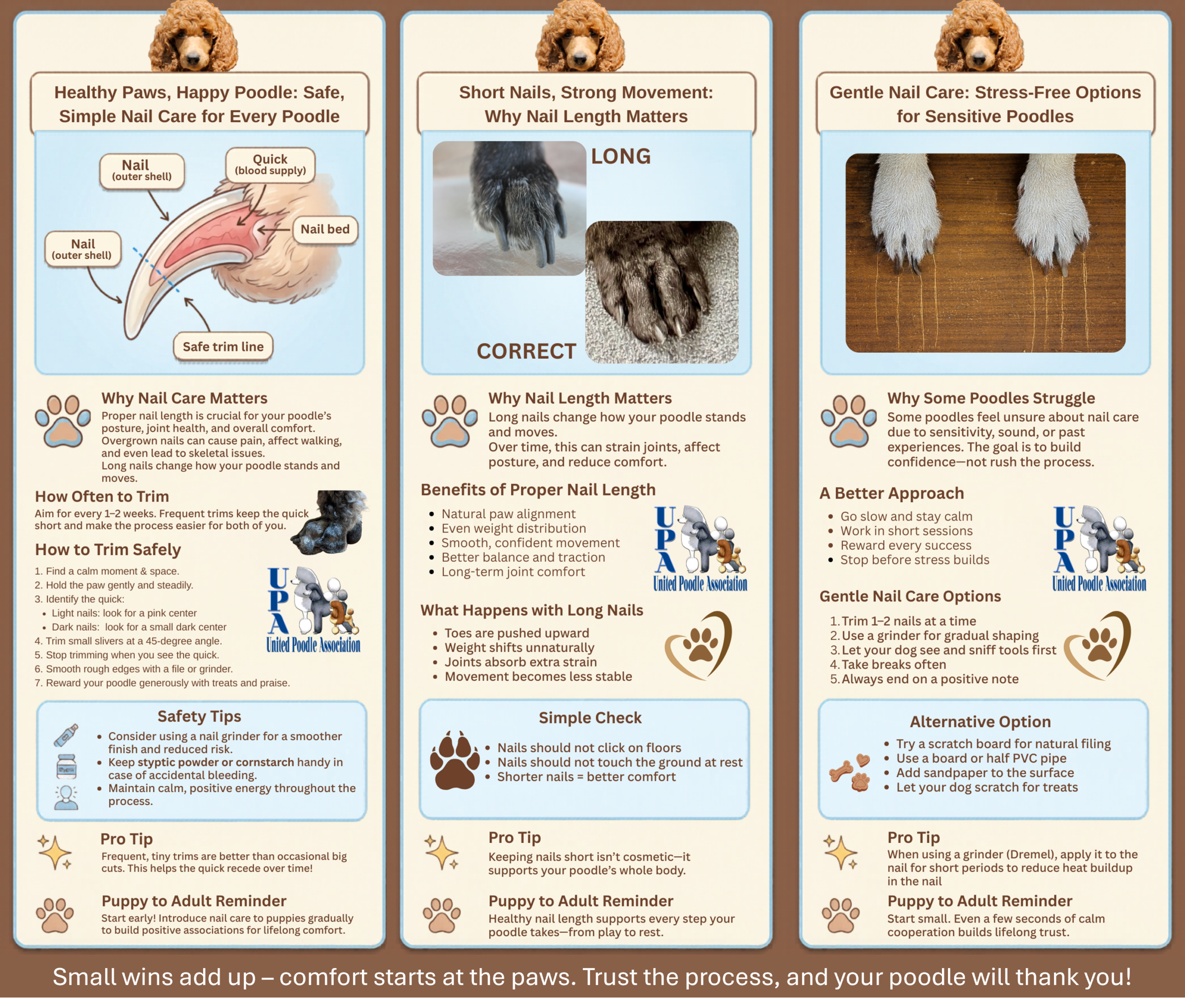 Author: Wendy Coffey (UPA Education Committee Member)Peer Reviewer: Barbara Hoopes, Ph.D. The poodle has been at the top of the popularity charts for decades due to their intelligence; versatility in effortlessly going from stunning show dog to performance dog, service dog, or pet; and for their glorious coats that are ever-growing and able to be styled in seemingly endless traditional, fun, and...